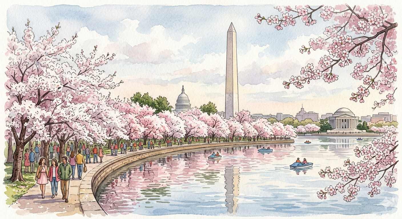 - ワシントンは、ちょうどポトマックリバー沿いの桜が満開。