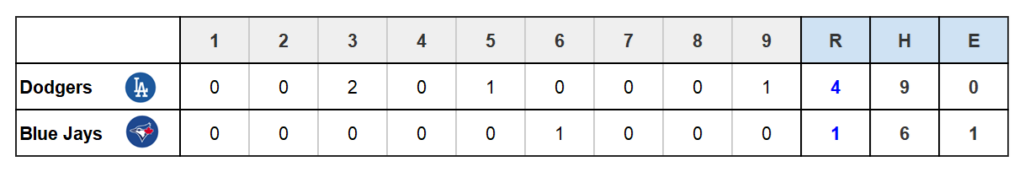 ドジャースダメ押しの得点とし、TOR 1-4 LADに。