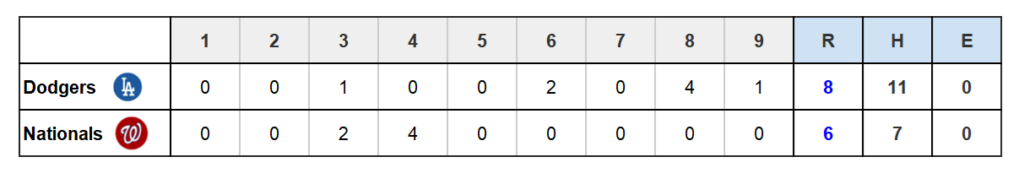 ドジャース WSH 6-6 LADと同点に追いつく。依然ランナーは1、3塁。