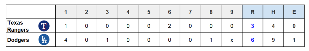 7番 A.パヘスもレフトへのタイムリーヒットとし、ドジャース追加点あげLAD 6-3 TEXと引き離す。